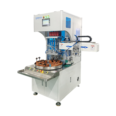 轉盤多工位自動鎖螺絲機1、可同時擰緊多顆螺絲 2、對孔距較小的螺絲,可分兩個工位作業3、鉚